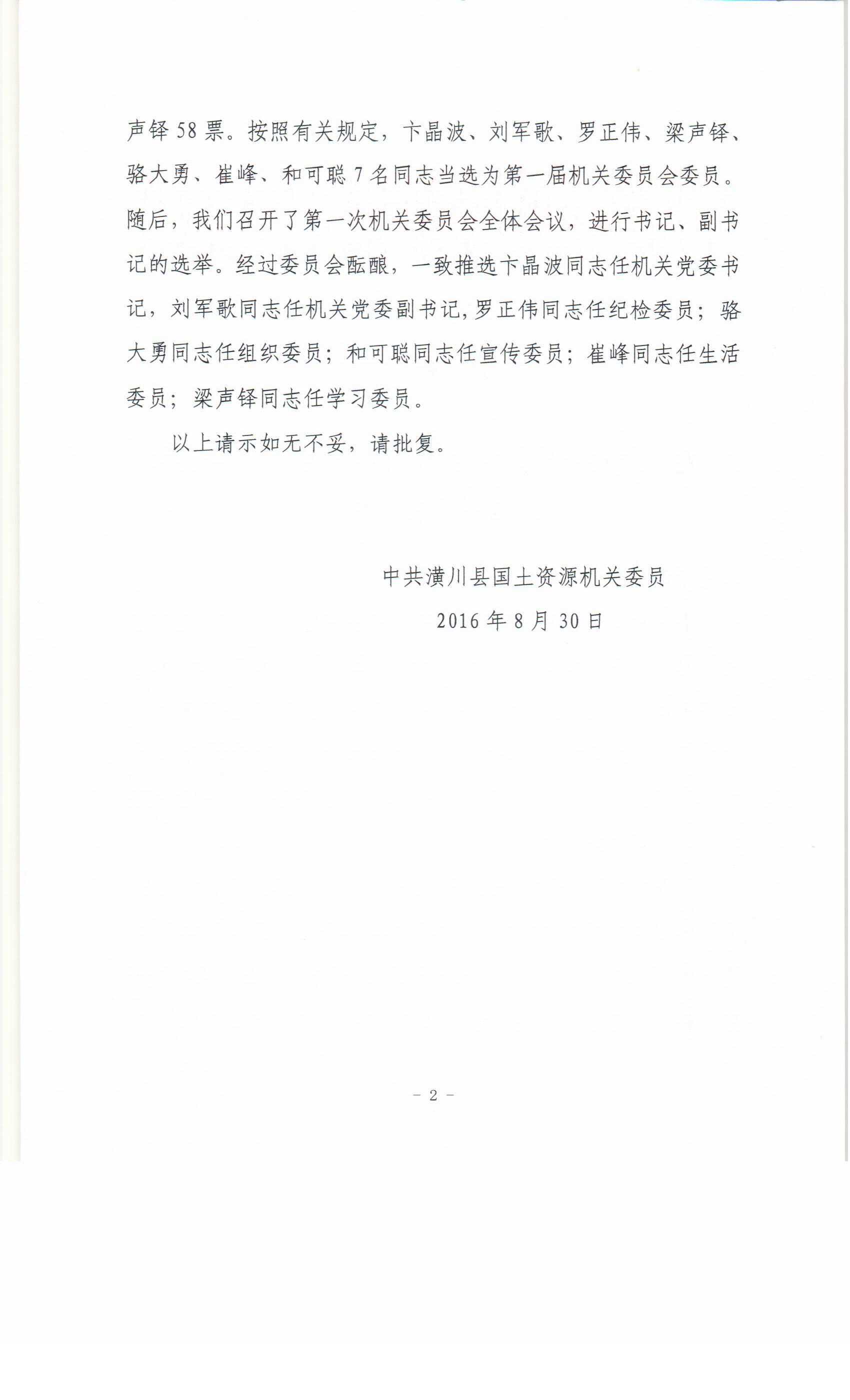 关于中共bet365电脑网址机关党委所属6个党支部选举结果的请示